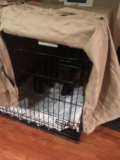 Covering the top of the crate with a towel or blanket gives your dog a feeling of being in a den.